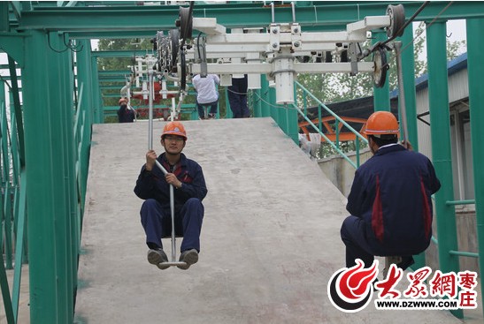 在架空乘人裝置模擬線上,新遠大公司工作人員和記者登上一輛被俗稱為“猴車”的架空乘人裝置,人坐在猴車上,雙腳自然放置,平滑的索道穩(wěn)定有序的將人根據(jù)地勢的高低不同送到終點。據(jù)工作人員介紹,猴車主要承載著將礦井工人從起點運送到井下的各個工作點,輕便穩(wěn)定的“猴車”改變了井下礦工徒步行走十幾里路采煤的歷史。